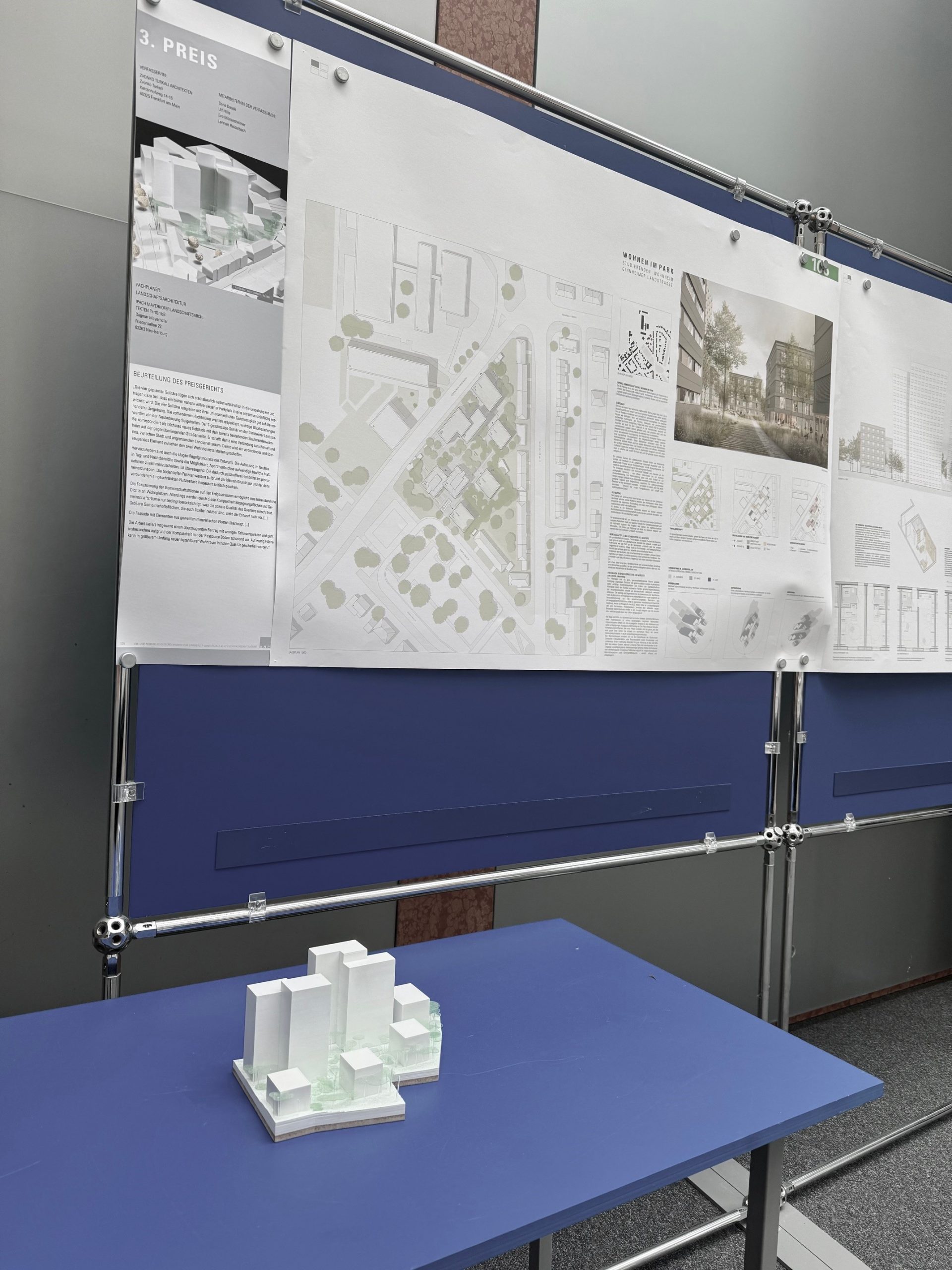 Und: „Die Arbeit liefert insgesamt einen überzeugenden Beitrag (…) und geht insbesondere aufgrund der Kompaktheit mit der Ressource Boden schonend um. Auf wenig Fläche kann in größerem Umfang neuer bezahlbarer Wohnraum in hoher Qualität geschaffen werden.“