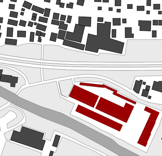 Die Parkierung für Besucher*innen und Mitarbeiter*innen ist unmittelbar an der Zufahrt zum Grundstück gelegen. An zentraler Stelle sind barrierefreie Stellplätze geplant. Der lineare Freiraum zwischen dem Haus am Fluss und den Umkleiden der Werkhallen ist der fußläufigen Erschließung, dem Radverkehr, der Andienung für Küche, Verwaltung und Gästehaus sowie der Feuerwehr vorbehalten. Die Werkhallen und Lagerbereiche werden auf direktem Wege von der Straße „Oberer Wasen“ über die Freiflächen angedient. Die Hallen sind mit entsprechenden Toren versehen.
