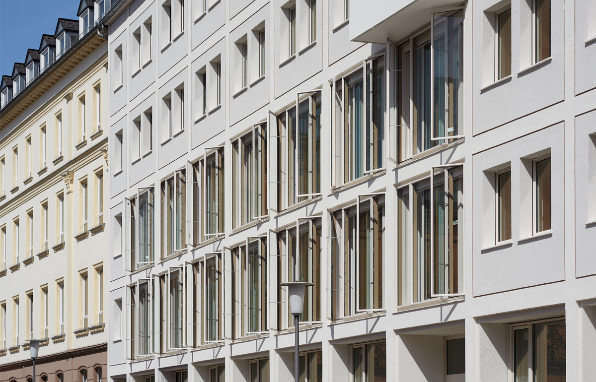 Unter Wahrung der äußeren Erscheinung ist die Fassade nach energetischen Gesichtspunkten saniert worden.