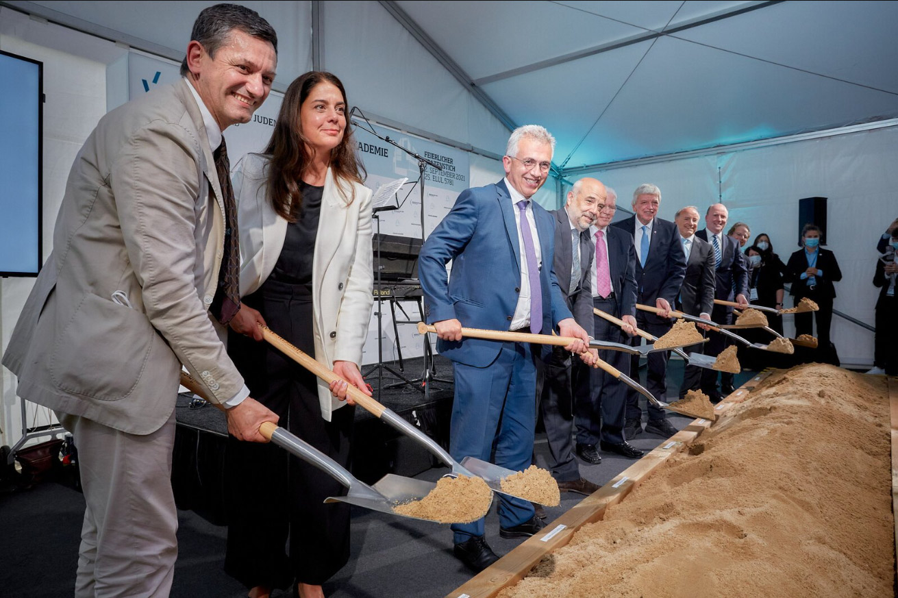 Mit einem symbolischen Ersten Spatenstich hat der Zentralrat der Juden in Deutschland am Donnerstag, den 2. September 2021, den Baubeginn der Jüdischen Akademie eingeläutet. An dem Festakt in der Senckenberganlage in Frankfurt am Main nahmen neben Hessens Ministerpräsident Volker Bouffier, der Staatssekretär im Bundesinnenministerium, Dr. Markus Kerber, der Präsident des Zentralrats der Juden in Deutschland, Dr. Josef Schuster sowie weitere Politiker teil. Hinzu kamen rund 100 geladene Gäste aus Politik, Wissenschaft und Kultur.