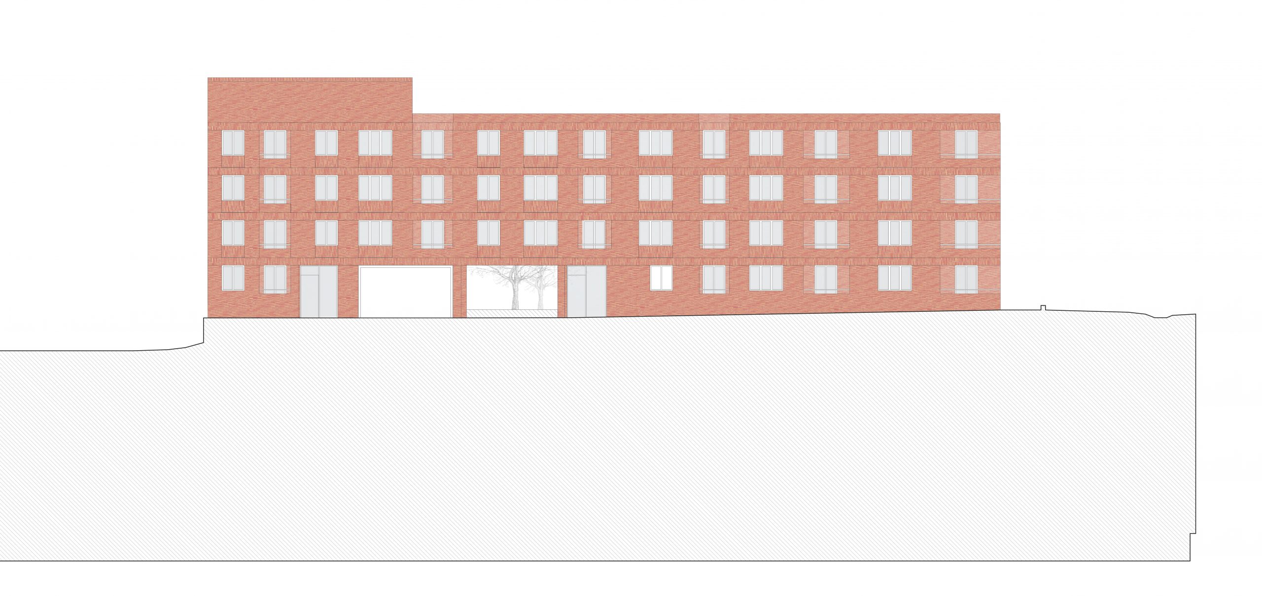 Wir stellen uns ein homogenes, räumlich spannendes Gebäudeensemble mit einem differenzierten Wohnangebot für Menschen mit ganz unterschiedlichen Bedürfnissen vor. Die Architektur unseres Ensembles ist in mehrfacher Hinsicht ambivalent: Sie ist großmaßstäblich und im Detail differenziert, sie ist blockhaft und im Volumen strukturiert, sie ist dezent, ja zurückhaltend und gleichsam an den Besonderheiten der jeweiligen Situation interessiert. Mit bodenständiger Materialität, fein herausgearbeiteter Plastizität, mit wiederholenden Elementen und großen Öffnungen entsteht ein freundliches Gebäudeensemble mit hoher Wohn- und Aufenthaltsqualität. Ein Ensemble, das keine Auskunft über den jeweiligen sozialen Status des Bewohners gibt und den erforderlichen Lärmschutz mit großer Beiläufigkeit erfüllt.