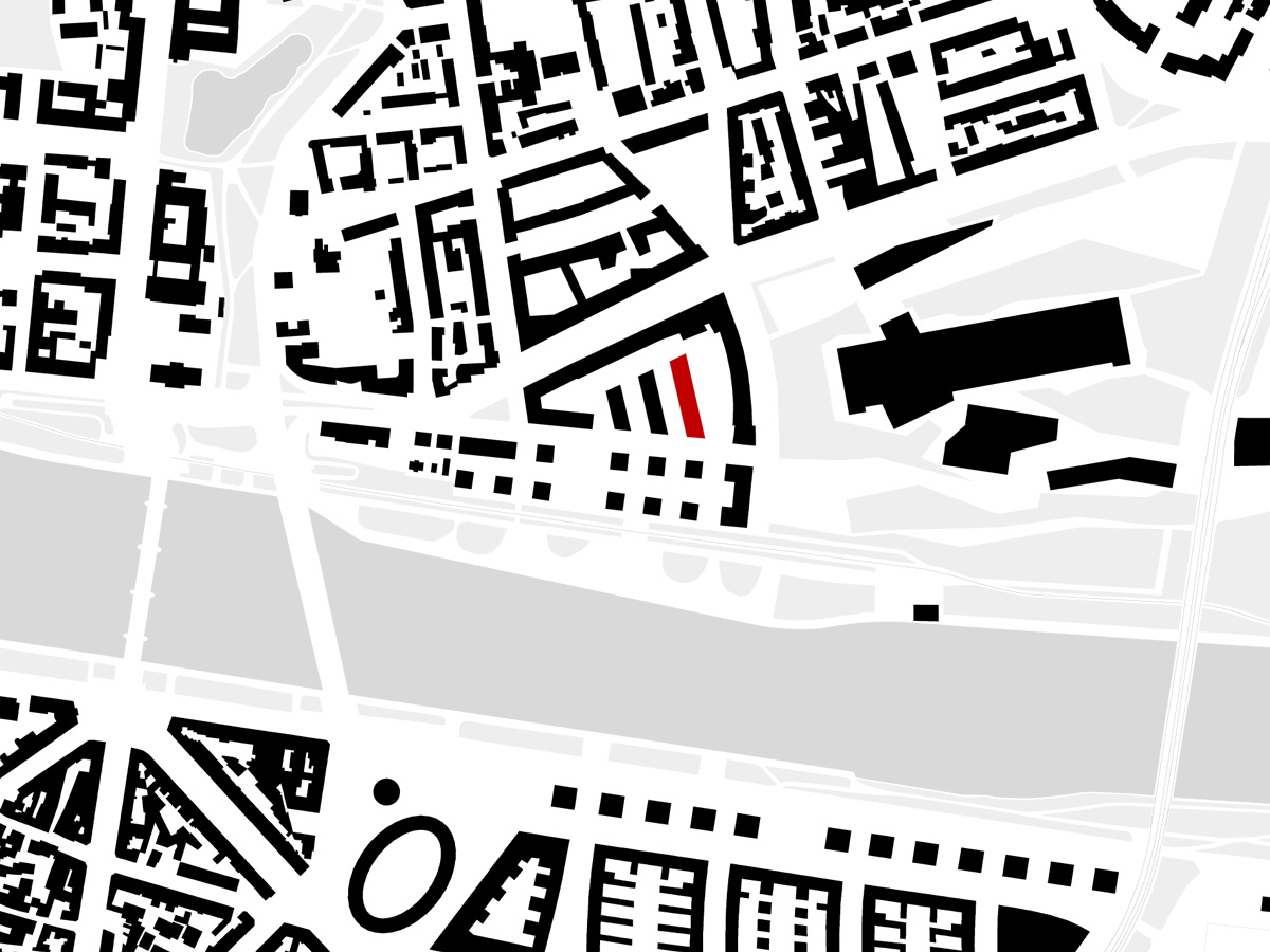 Im Auftrag der FRANK Heimbau Main/Taunus GmbH ist an der Oskar-von-Miller-Straße ein Wohnriegel mit insgesamt 39 Wohneinheiten entstanden. Während im Erdgeschoss das Gebäude noch einen durchgängigen Körper von etwa 76 Metern Länge bildet, löst sich der Riegel in den oberen Geschossen in drei Baukörper mit einer Länge von jeweils 23 Metern auf. Die bauliche Verbindung im Erdgeschoss reagiert auf die städtebauliche Vorgabe zur Riegelbebauung.