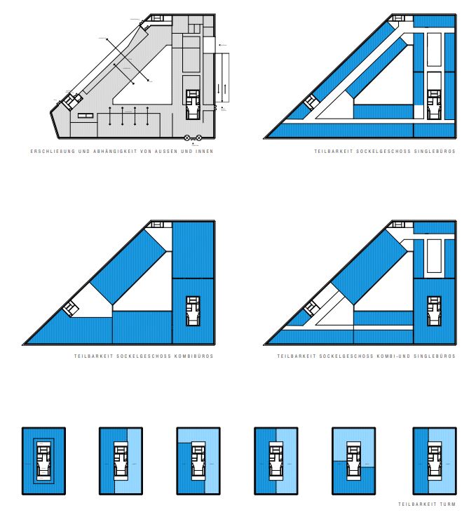 The internal organization of the building is functionally well thought out: the departments are arranged sensibly, and thanks to three staircases, a simple construction and a well-proportioned floor plan geometry, areas can be flexibly adjusted and various office units can be created. All rooms benefit from daylight and modern workplace qualities.