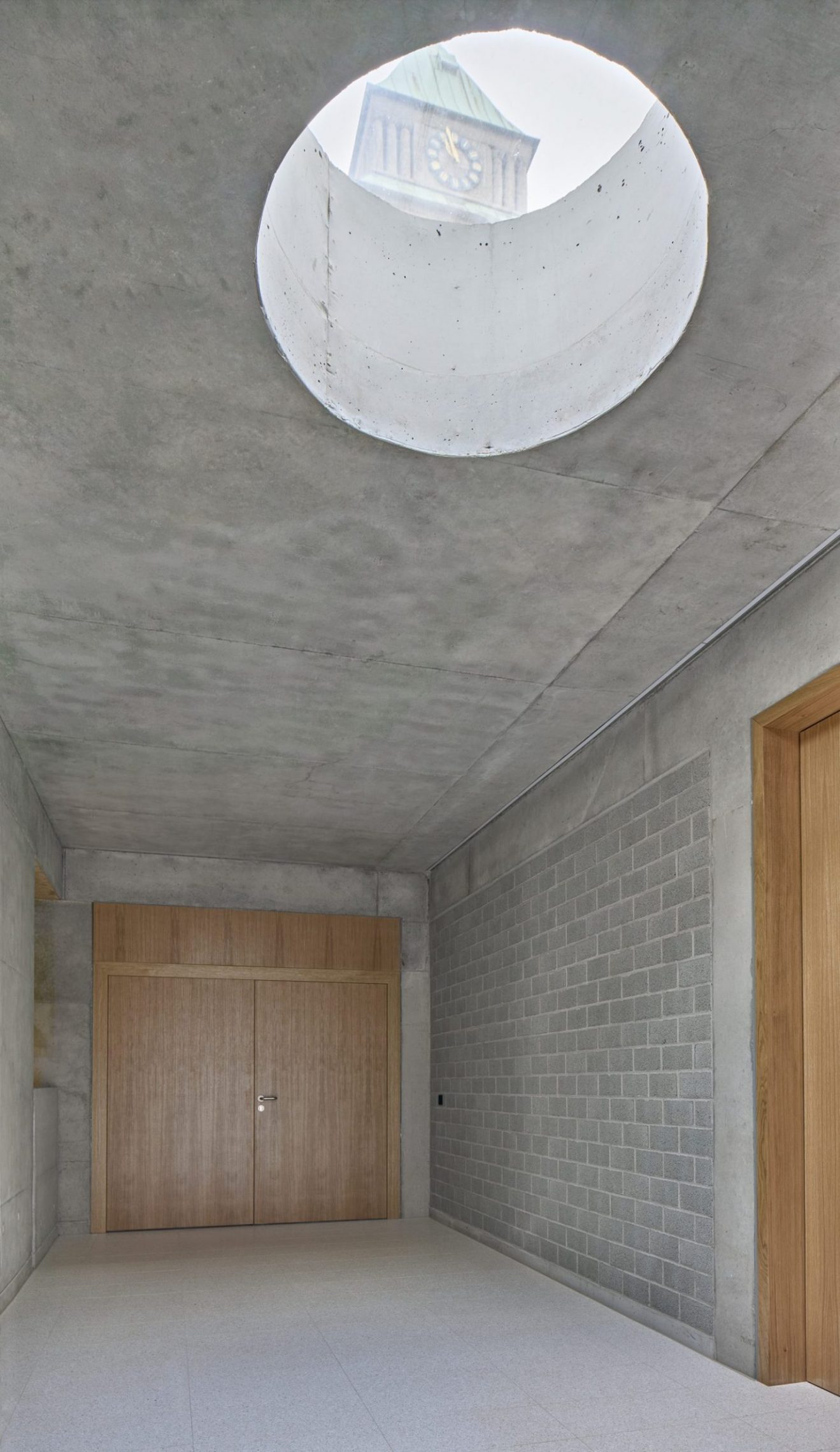 A new courtyard space is being created between the church and the newly planned residential building. This space is a special place, a transitional space from the street to the community center and church. This courtyard space, defined under a large oval opening, is suitable for a variety of activities, especially since the community hall and group rooms are planned directly adjacent. On nice sunny days the rooms can be completely opened up to the courtyard. A spatial continuum without steps and without boundaries is created between inside and outside. Every visitor, regardless of age, cultural and social background or interests, is welcome.